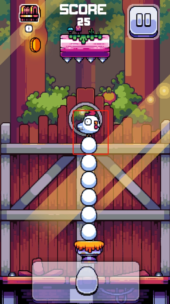 2、小鸡跳跃时,注意调整节奏,借助下方堆叠的鸡蛋向上攀升,穿过圆环,同时避开途中可能出现的危险。