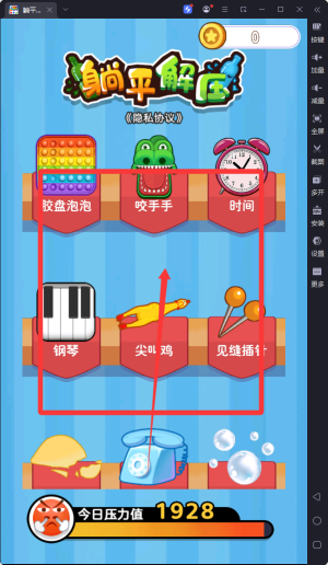 3、游戏中包含胶盘泡泡、咬手手、尖叫鸡、见缝插针、钢琴等多种减压小游戏,丰富多样的游戏内容为玩家提供了更多的选择。