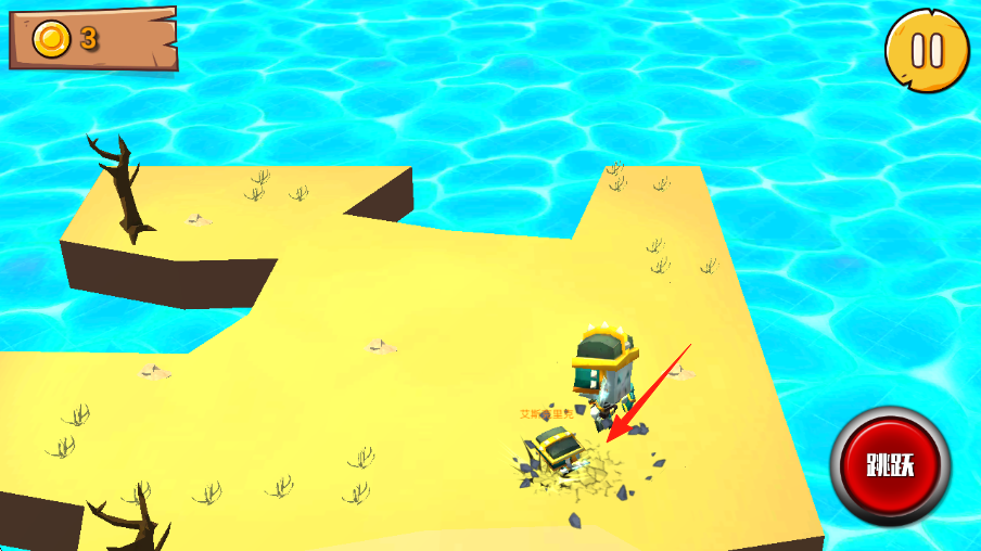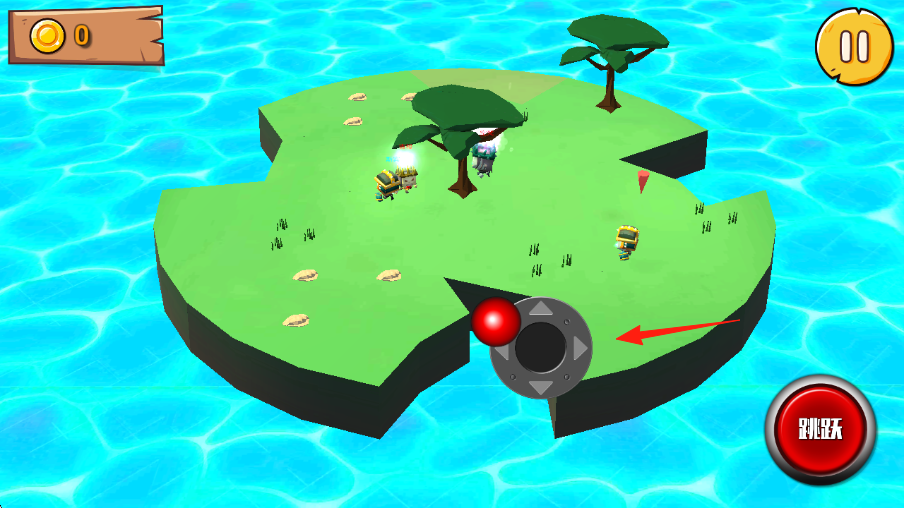 2、如图遇到缺口的时候,要点跳跃按钮,跨越地形,探索岛屿区域,解锁新场景如沙滩。