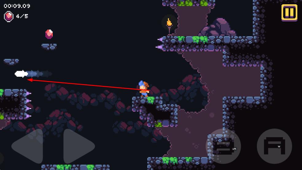 2、在洞穴中寻找红色宝石,累计收集5枚,提升左上角进度,推进关卡进程。