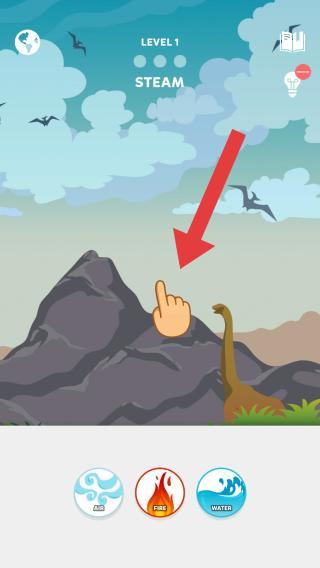 1、画面处于LEVEL1的关卡,呈现了远古时代的场景,玩家需要根据手指的指向进行相对应的操作。