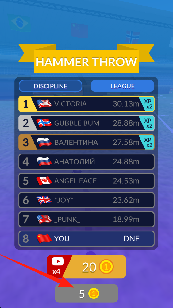 3、投掷结束后,在排名界面点击5金币按钮,领取本次挑战奖励,为后续挑战积累资源。