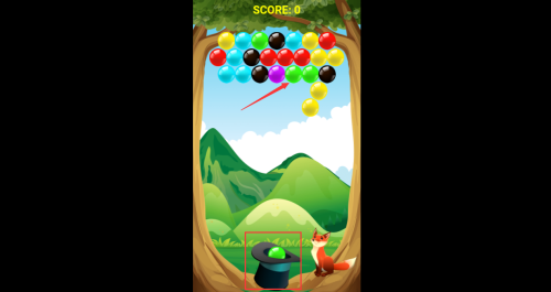 3、瞄准红框绿色泡泡,发射绿色泡泡完成消除。