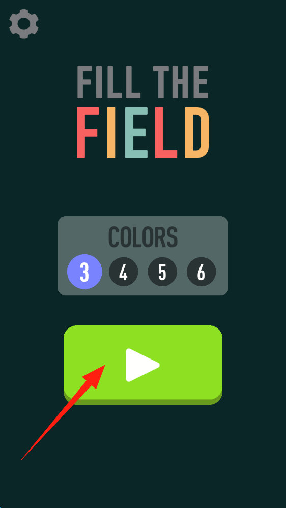 1、选3种颜色,点绿色播放键,开始Fill-The-Field游戏,点击当前的按钮开始当前的游戏。