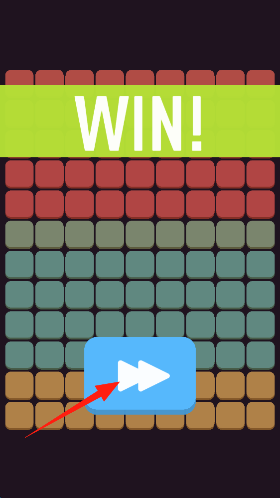 3、填满场地后,点蓝色箭头,进入下一关挑战更多颜色关卡,点击按钮进入游戏下一步。