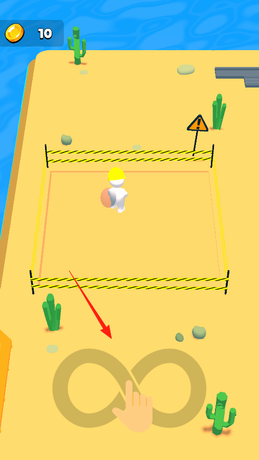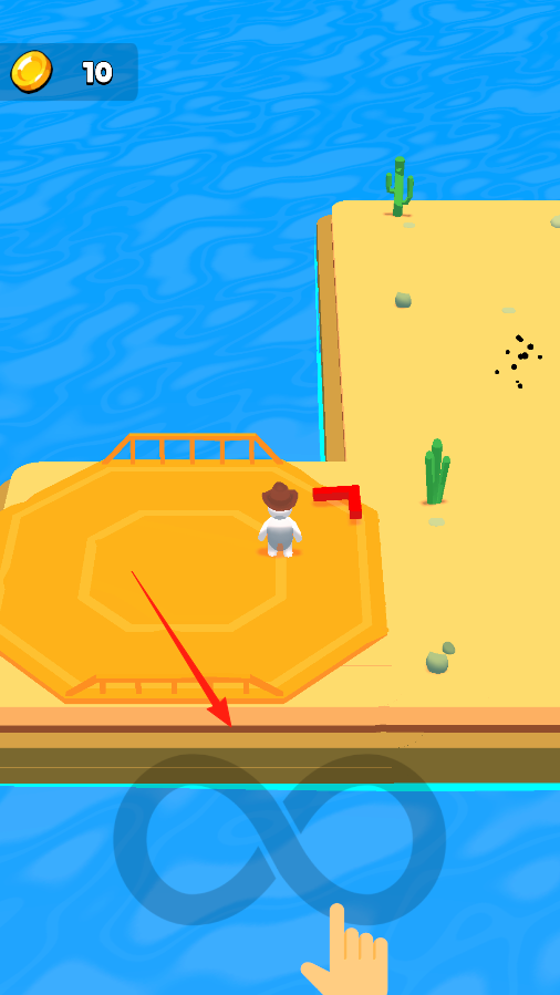 1、角色站在橙色的平台上,下方有个无限符号的提示,按照提示操作,让角色能从平台移动到旁边的沙地区域,开始在这个区域探索,看看能发现什么。