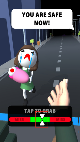 3、消灭所有敌人后遇见哭泣女孩,我们需要根据屏幕上的提示,看准绿色区域时机点击屏幕,成功抓取女孩完成解救任务。