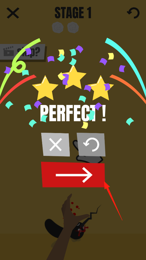 3、成功消灭蚊子后,屏幕显示PERFECT,说明这一关完成得很好,现在点击红色的箭头按钮,就能进入下一关,继续消灭虫子的冒险。