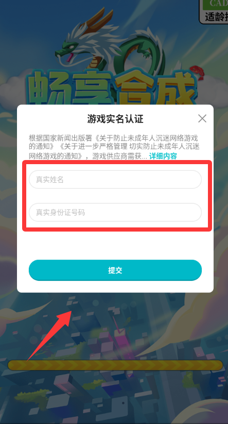 2、输入真实姓名和真实身份证号码然后点击提交。