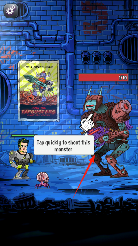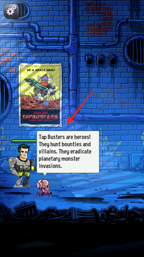 1、首先看到游戏里的介绍,了解到我们是英雄,会追捕悬赏目标和反派,还能根除行星怪物入侵,接着就可以跟着剧情,开启作为Tap Busters成员的冒险啦。