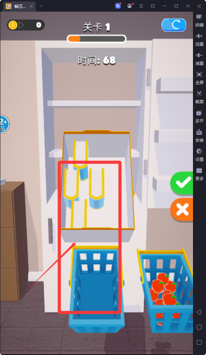 3、玩家需要找到完美的位置进行分类整理冰箱,将所有物品塞进冰箱里。这种目标导向的玩法让玩家有明确的方向。