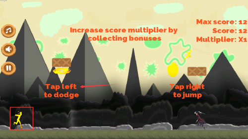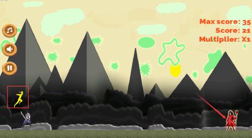 2、点击红框左侧区域躲避障碍,右侧区域跳跃。