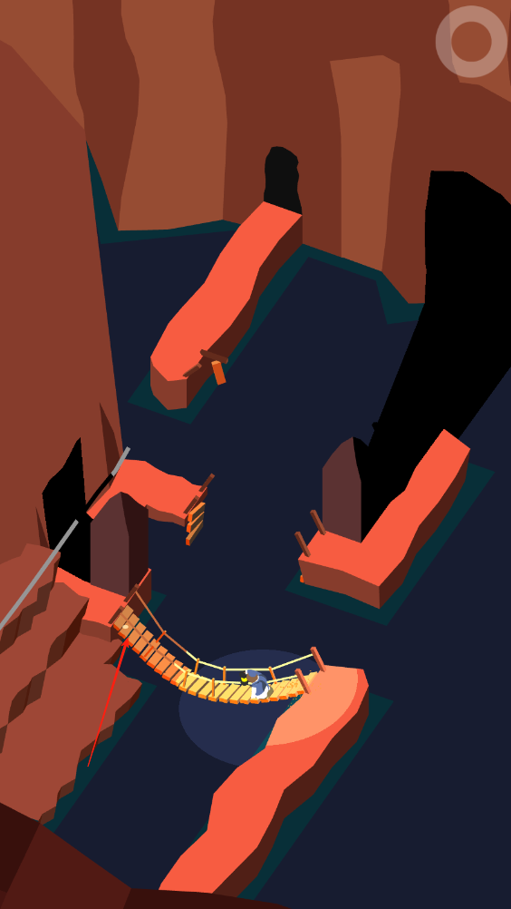 2、遇到吊桥、断桥等地形,观察结构,点击对应位置让小人通过,利用场景机关可移动石块,搭建路径。