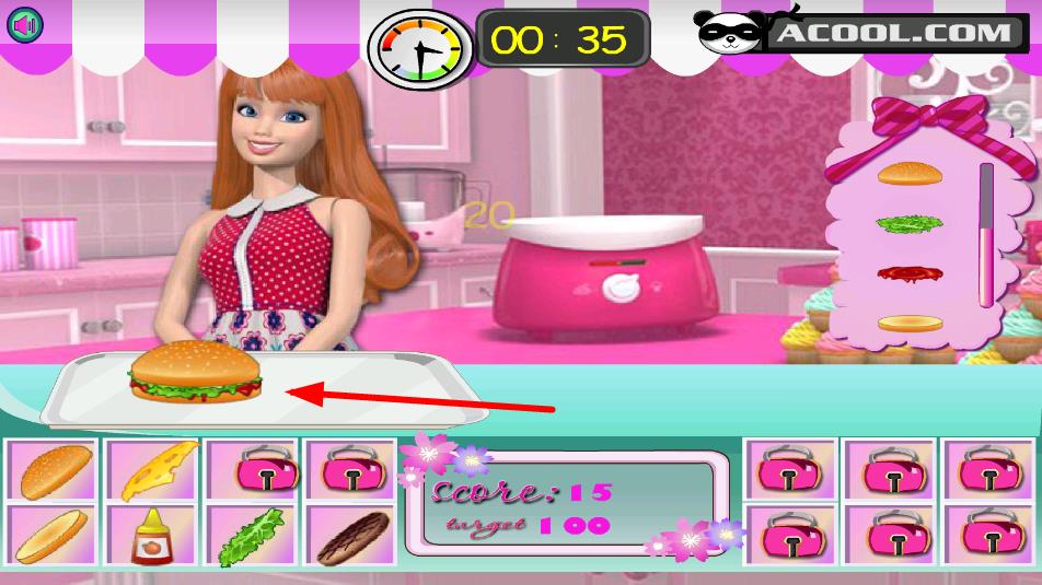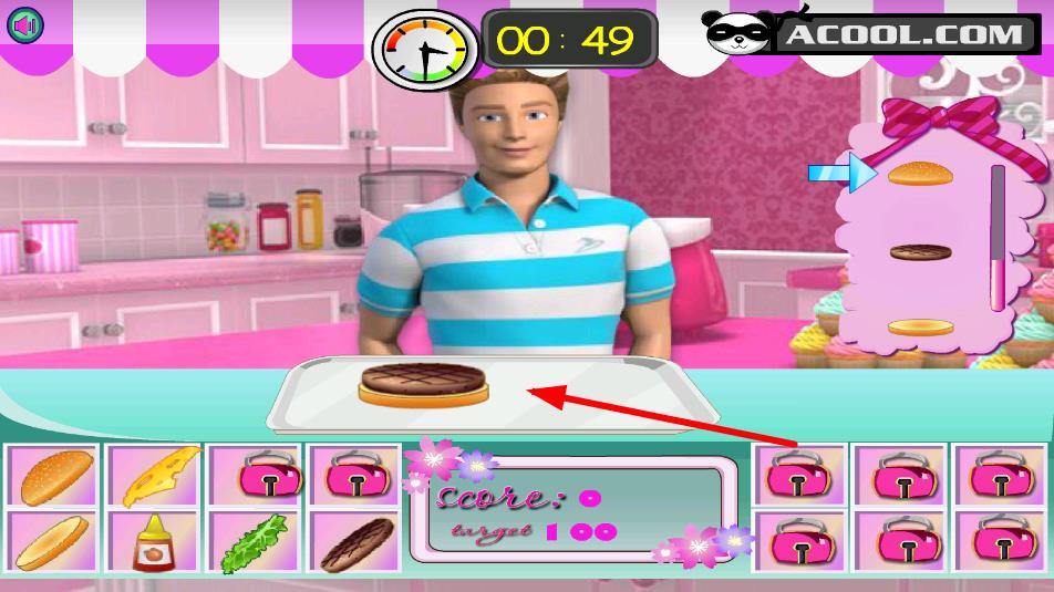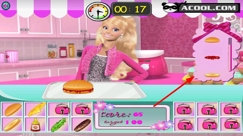 1、原料选择搭配:根据芭比口味需求,从原料库中挑选合适的面包、肉饼、蔬菜和酱料,按层次叠加组合,注意食材搭配的合理性与口味协调性,打造基础美味汉堡。