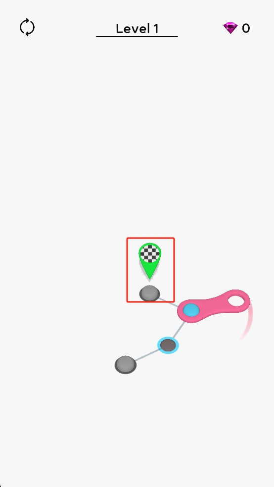 2、操控粉色的机械部件,带动相关的节点移动,朝着带有方格旗标识的绿色目标位置前进,要保证移动的路径是顺畅的。