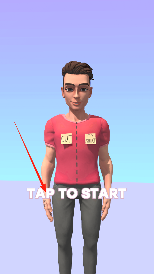1、屏幕上有个TAP TO START,点一下就能开始游戏啦,开始后应该就能进入到后续的操作环节,去处理人物的衬衫。