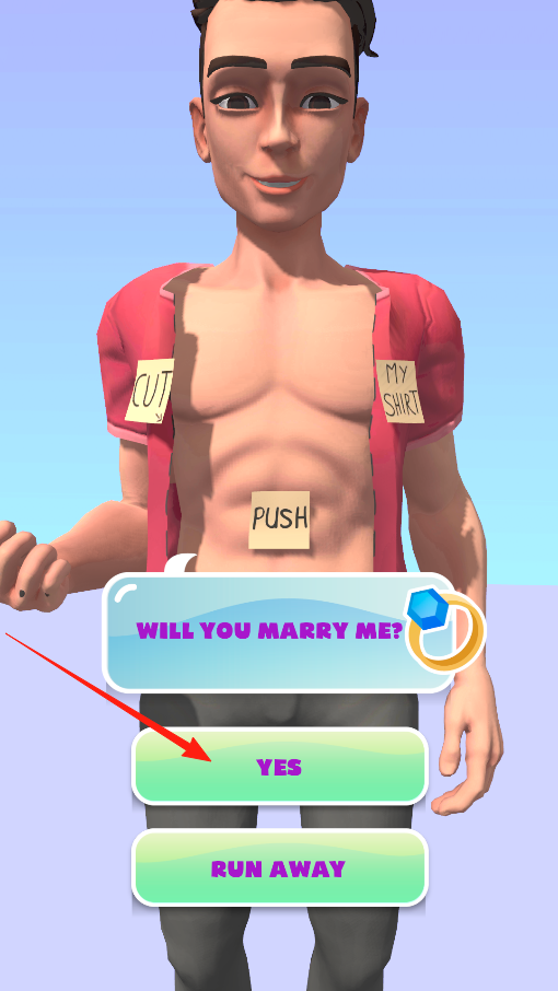3、出现了WILL YOU MARRY ME的问题,你可以根据自己的想法,点击其中一个选项来推进游戏。