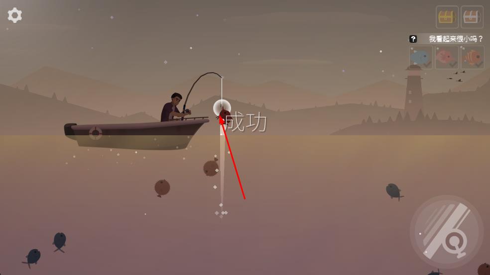 3、成功钓到鱼、宝箱等物品,积累资源推进游戏进程。