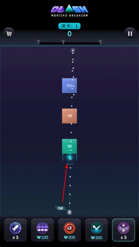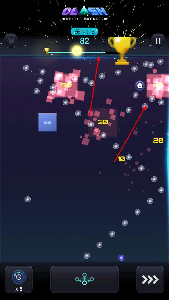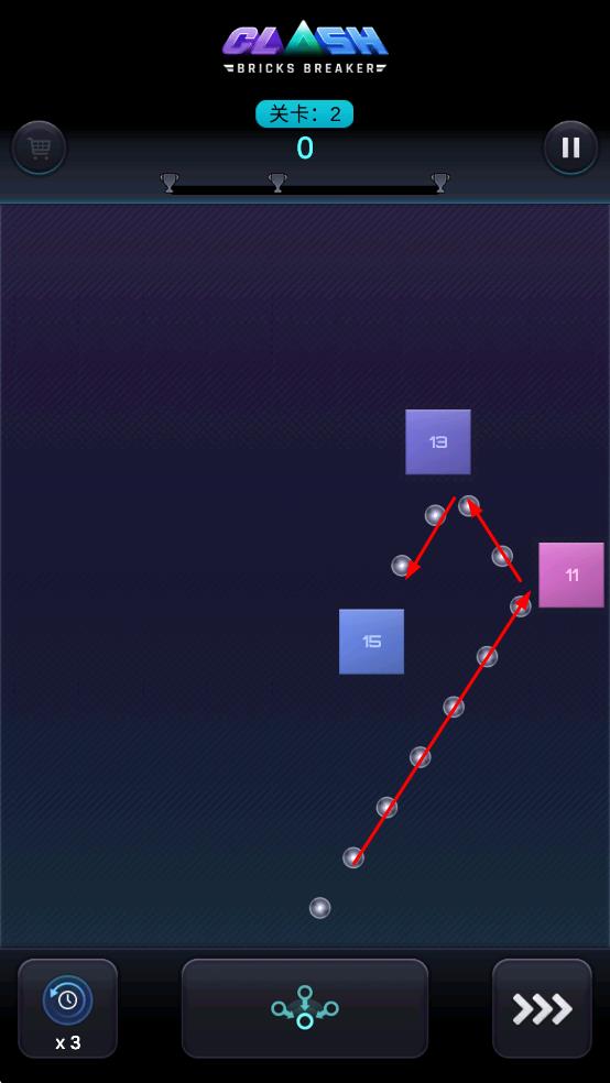 2、把控角度高效击打:在发射小球前,需仔细观察所有砖块的位置与排列,找到能击中所有砖块的最佳发射角度,角度选择直接影响击打效率,精准的角度判断能减少小球浪费。