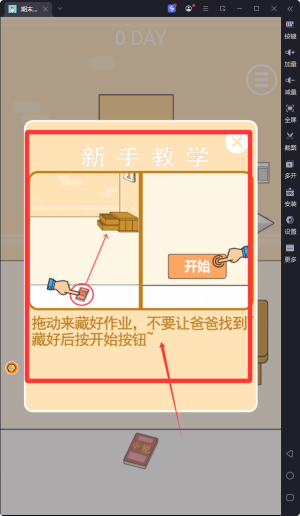 2、玩家要收集场景中的道具,巧妙应用各种特殊位置来躲开老爸的搜查。通过利用道具和场景的特点,玩家可以增加藏匿的成功率。