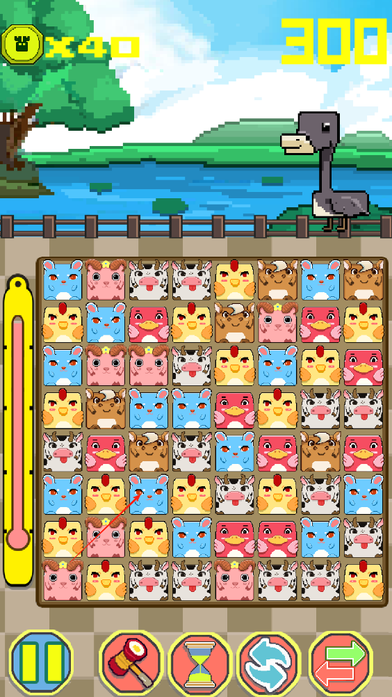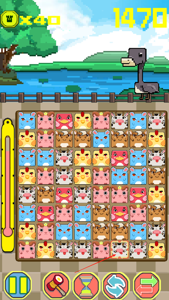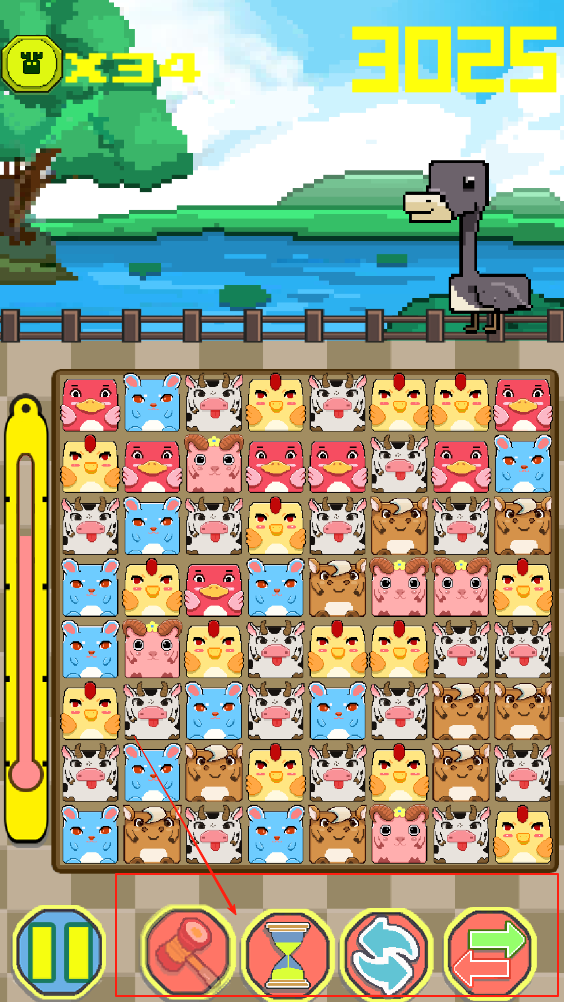 3、利用下方的道具,比如锤子可敲除单个动物方格,沙漏能增加游戏时间等,合理使用道具帮助消除更多动物,提升得分效率,推进游戏进程。