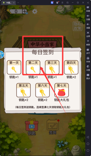 1、每日上线第一时间要查看您的签到奖励哦,得到大量资源,方便后续游戏体验哦。