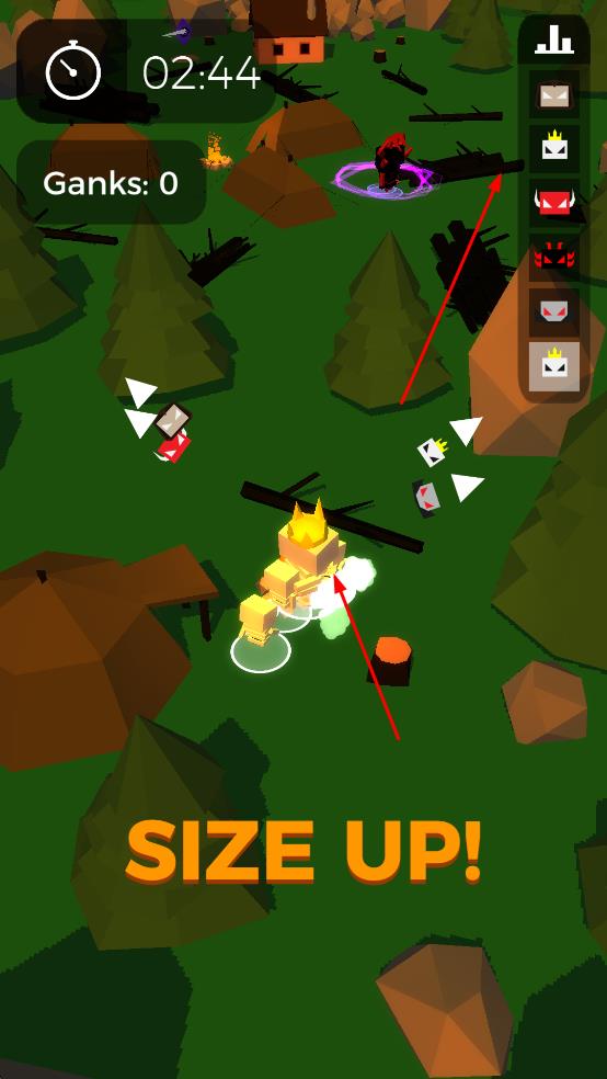2、击败敌人后,角色触发SIZEUP效果变大,提升战力,同步更新Ganks计数。