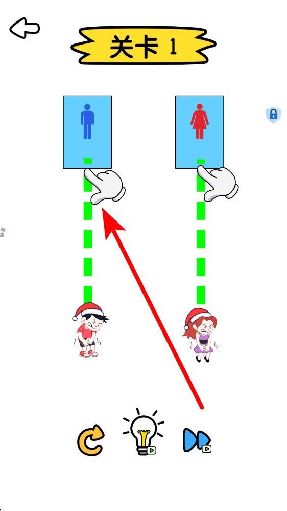 1、进入界面后,挑选目标关卡,点击圆形播放键正式启动,仔细观察角色性别特征,区分男女厕所标识样式,为后续路径规划做足准备。