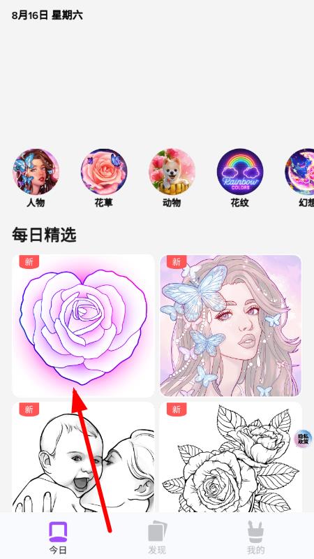 2、根据图案上的线条划分出不同区域,从调色板中选择合适的颜色,用手指点击或滑动进行填充,还能调整画笔大小来精准涂色,避免颜色超出线条。