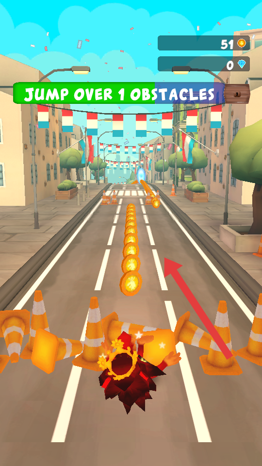 1、障碍物闪避机制:面对赛道上出现的各种障碍物,玩家必须及时操控狮子进行闪避,避免狮子受伤影响跑酷进程,通过精准的闪避操作,确保狮子能持续向前奔跑。