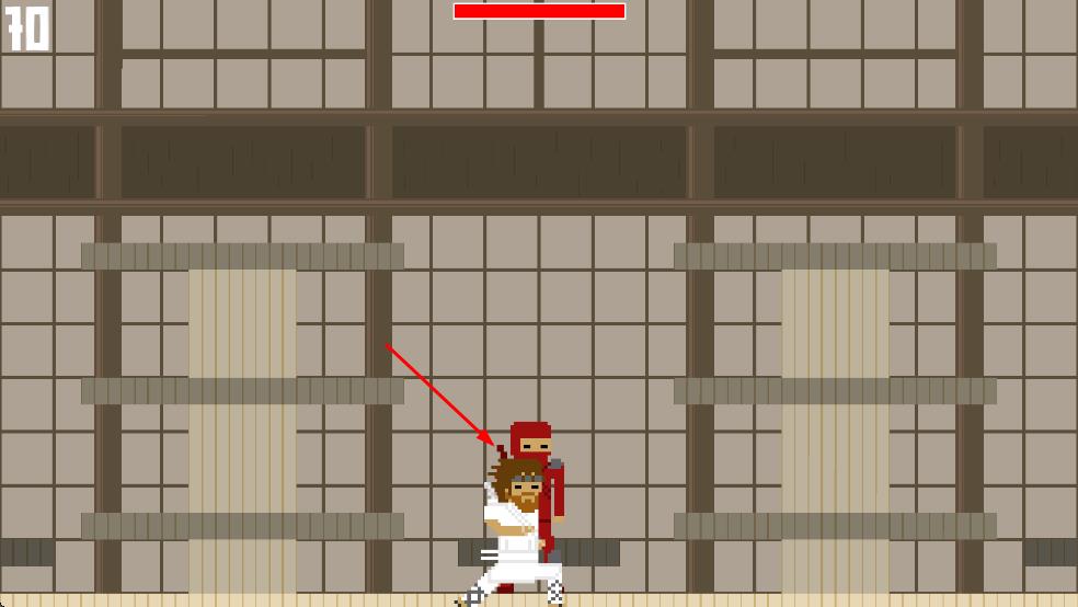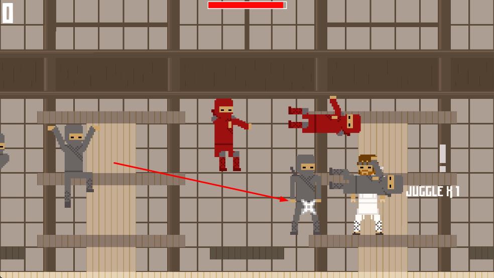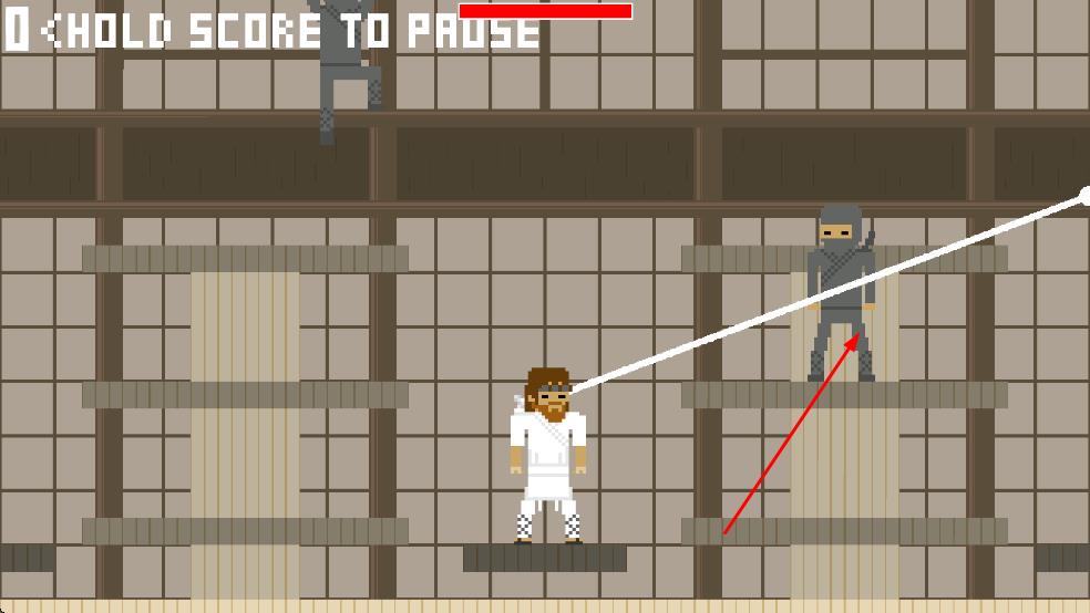1、操控白衣角色,在日式场景迎战红、灰忍者,关注血条维持存活。