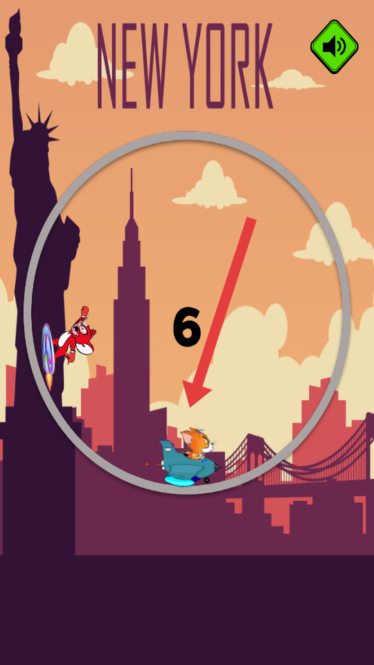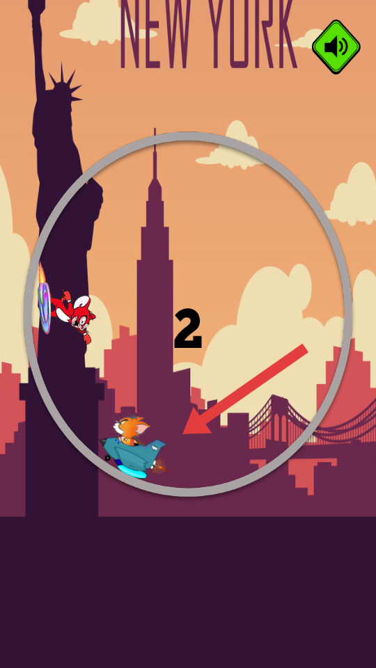 1、选择角色汤姆或者杰瑞,观察圆环角色的位置,点击屏幕控制移动,让角色穿环,优先过数大环。