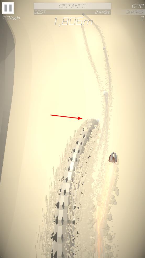 1、启动火箭,在沙道操控方向前行,开启距离积累,冲击最佳纪录。