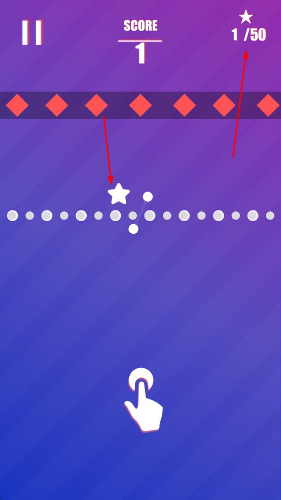 2、白球移动中碰撞障碍、收集星星,累计分数,推进星级进度。