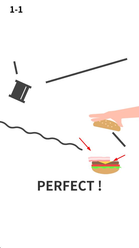 3、将食材准确组合至汉堡,完成组装触发PERFECT!,达成关卡挑战目标。