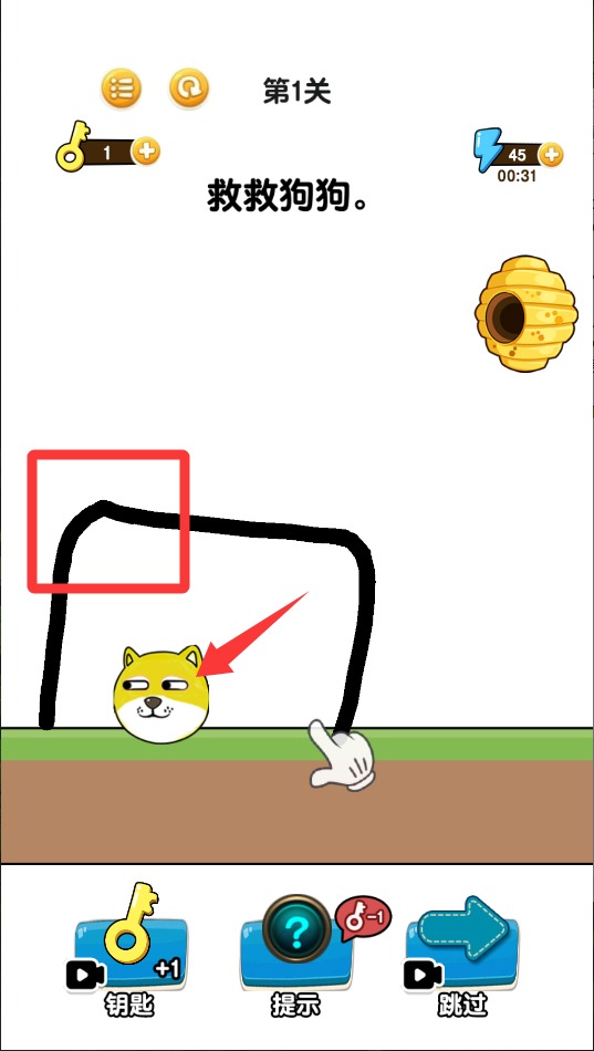 3、用手指在屏幕上随便画线,把小狗围起来就行,线画得密一点别留缝,不然蜜蜂会钻进去。