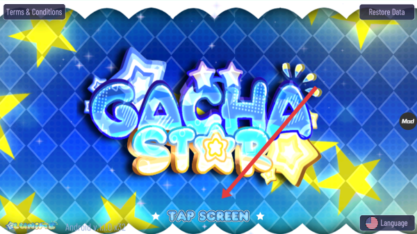 1、进入Gacha-Star游戏启动页,点击中间TAP-SCREEN”区域,进入角色编辑界面,开启个性化装扮之旅。