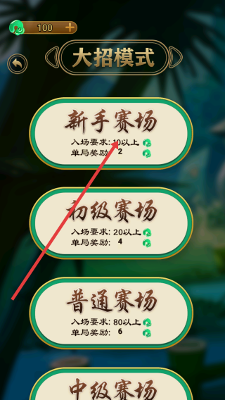 3、进入大招模式赛场选择,新手玩家可以点击新手赛场,难度较低,适合第一次体验游戏的玩家。