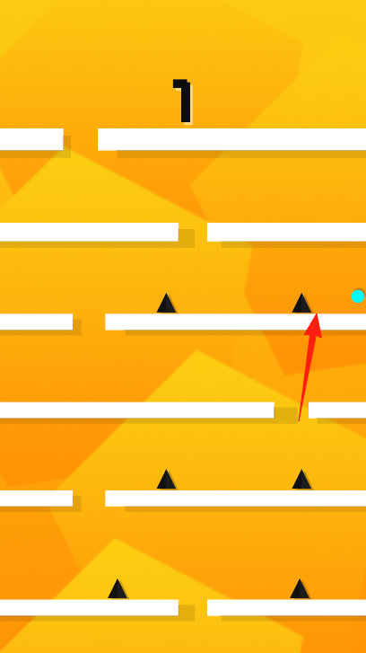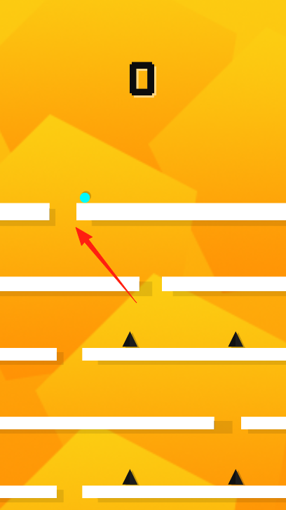 3、回到橙色场景,小球跳跃红箭头,避尖刺、跨空隙,持续向上,挑战更高层数。
