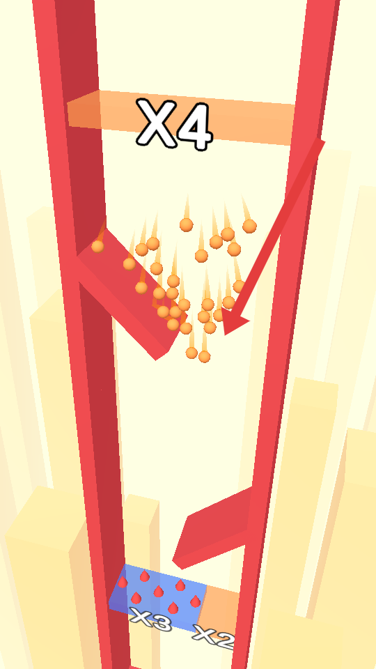 2、小球下落时,留意通道颜色变化如黄色,及时点击切换颜色,让小球顺利通过对应颜色区域。