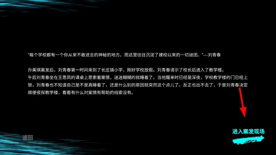 1、进入游戏后,置身于长庄镇小学的调查场景,通过点击交互查看教室、办公室等区域的物品,收集散落在各处的线索道具。