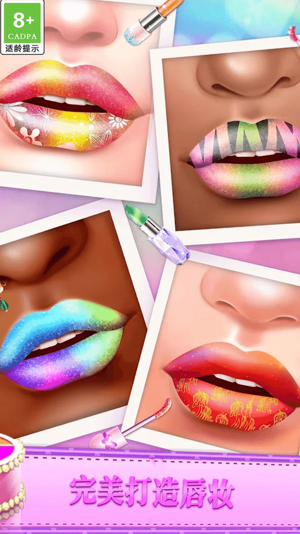 1.创意唇妆:玩家可自由选择不同口红色号与花纹,通过简单操作打造个性化妆容,让每一次尝试都充满时尚与惊喜的独特体验。