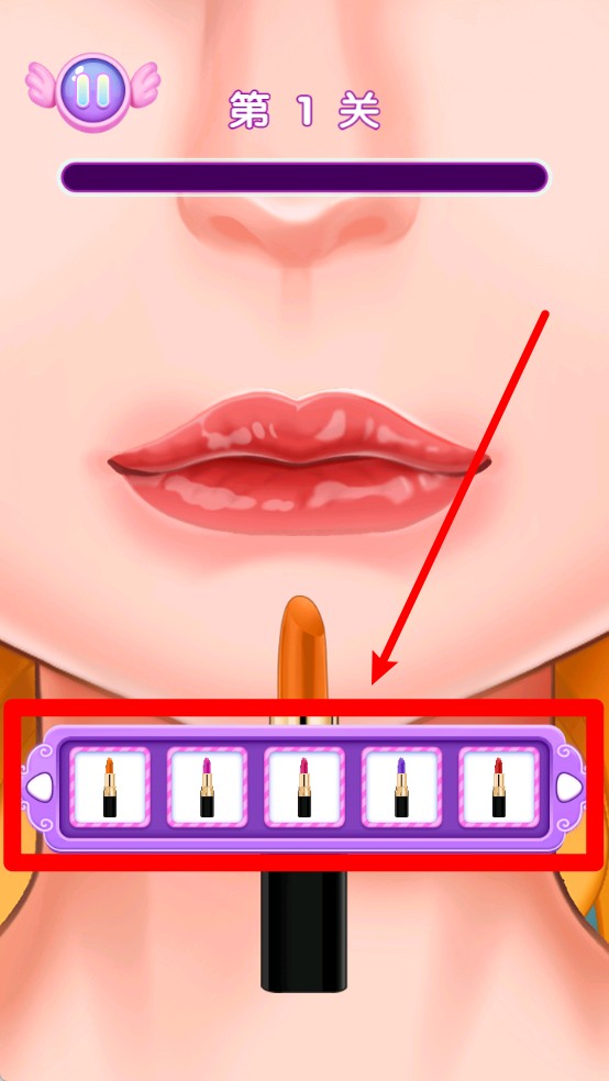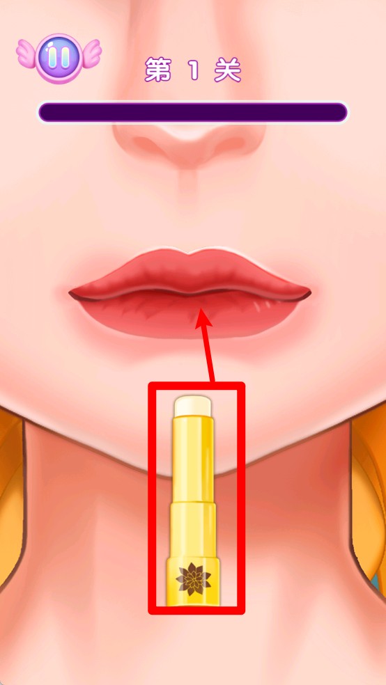 1.第一关需要玩家控制口红在双唇上均匀涂抹,保持手势稳定精准,才能顺利完成基础唇妆的描绘任务。