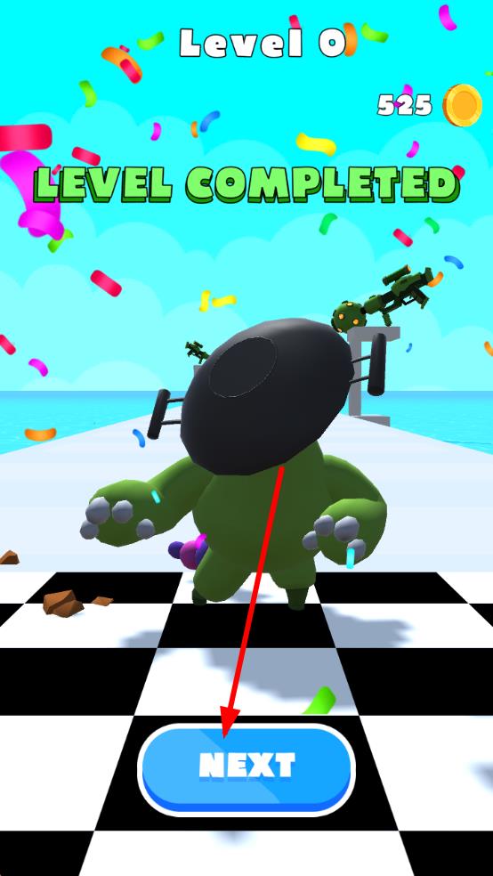 3、击败所有敌人,冲过终点线,屏幕弹出LEVEL COMPLETED提示,点击NEXT进入下一关,解锁新赛道场景与更强大的敌人。
