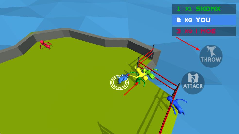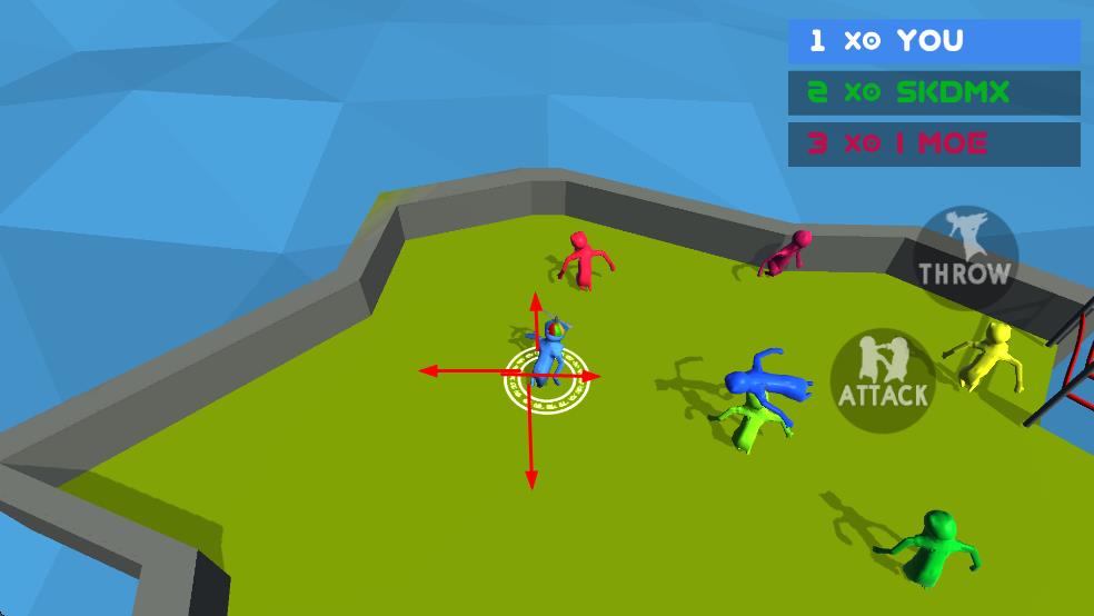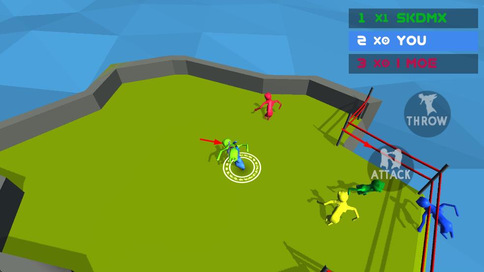 1、操控角色参与对战:玩家操控小人物进入赛场,通过简单操作控制角色不停摆动身体,找准时机将自己或对手从一个地方丢到另一个地方,与其他玩家展开实时对战。