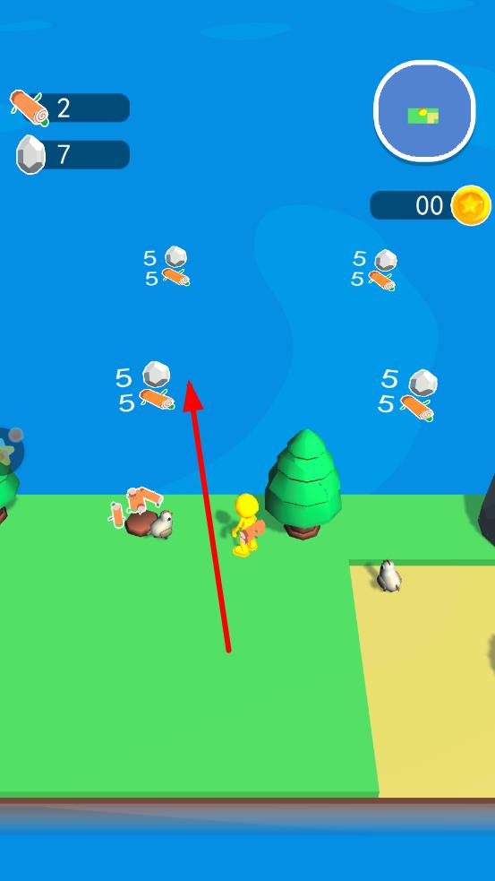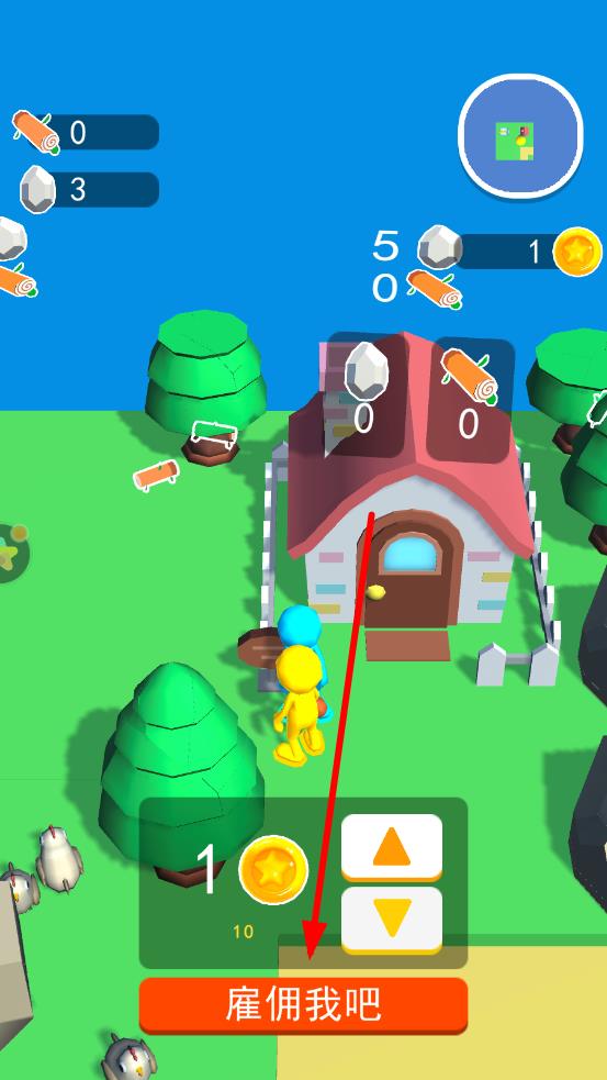 3、点击雇佣我吧按钮,招募工人,工人会自动采集需要的资源,玩家只需要使用他收集到的资源,继续解锁下一个区域。