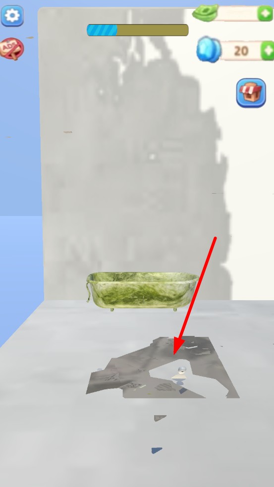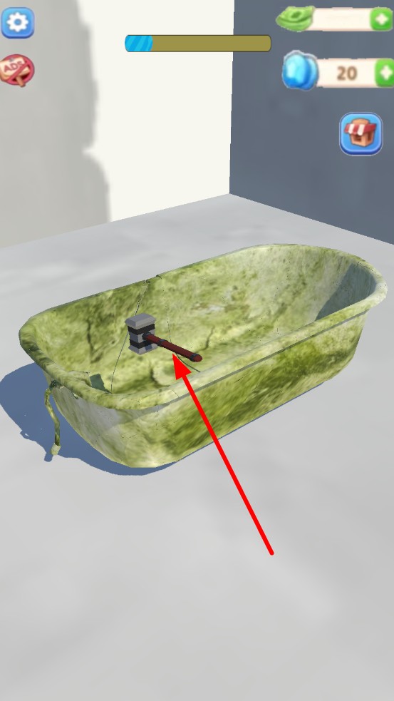 1、选择待改造生锈浴缸,点击界锤子,滑动屏幕瞄准敲击位置,正式开启拆解流程。