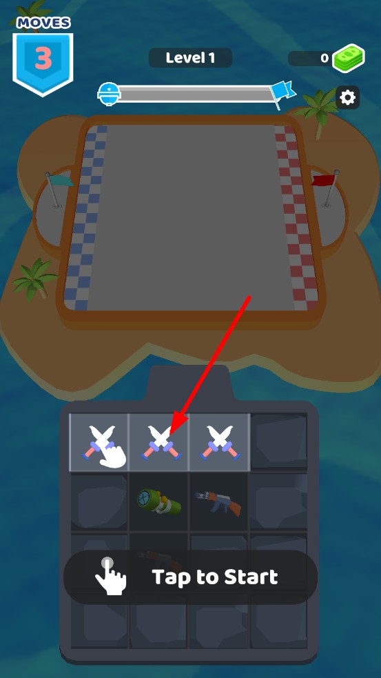 2、极简战场设定:海岛方格战场聚焦兵种对抗,两端旗帜为胜负标志,场景无冗余设计,让玩家专注战术博弈,每一步决定都决定着攻防胜负。