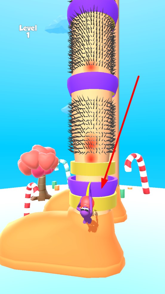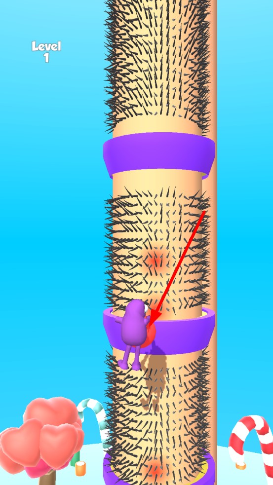 清理毛腿是一款魔性攀爬闯关游戏,玩家操控紫色小人在布满尖刺毛发与彩色圆环的巨型柱子上攀爬,通过收集红色道具解锁更多圆环,灵活避开尖刺障碍一路向上冲刺,最终挑战登顶目标,体验手忙脚乱又充满趣味的攀爬过程。