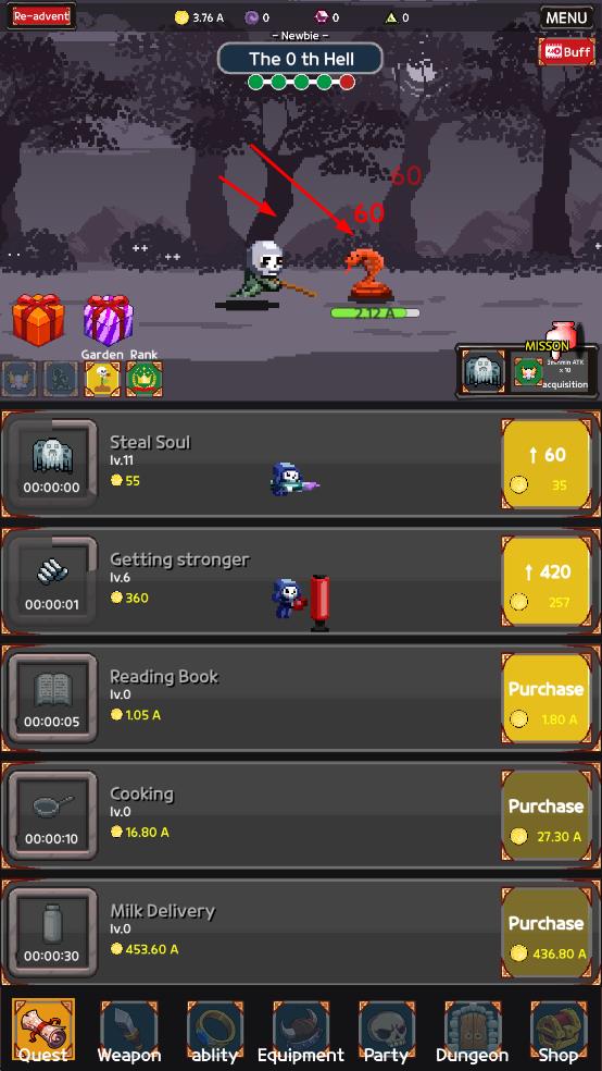 2、操控骷髅角色,在The 0 th Hell等地牢场景攻击怪物,推进关卡解锁更高难度。